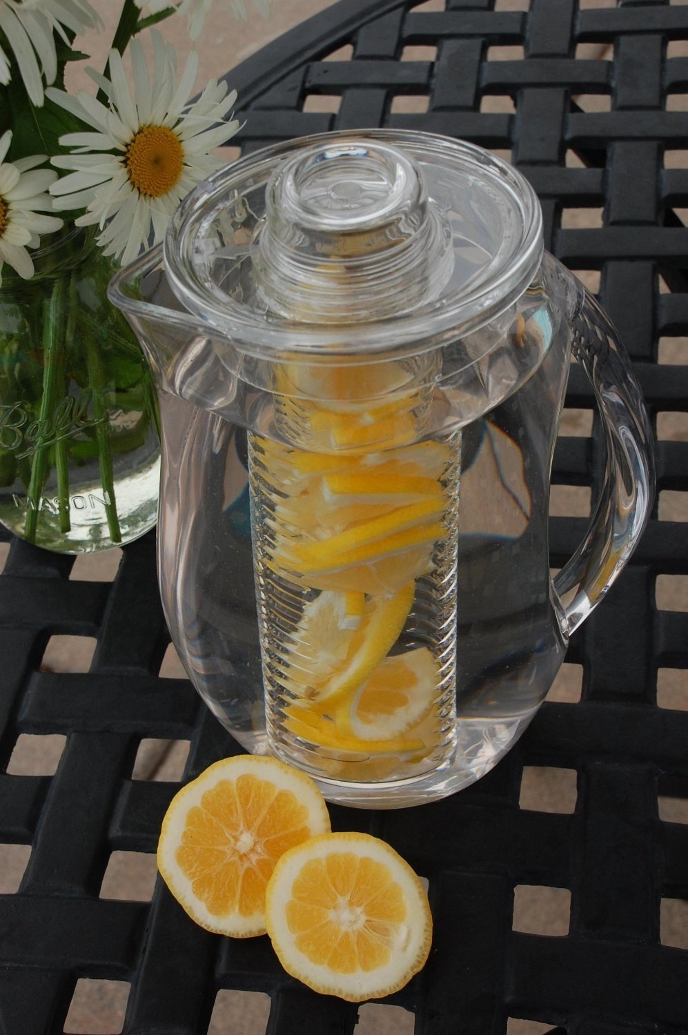 Clear acrylic allows for enticing view; pitcher looks great on a well-set table; may be continually refilled without replacing fruit.